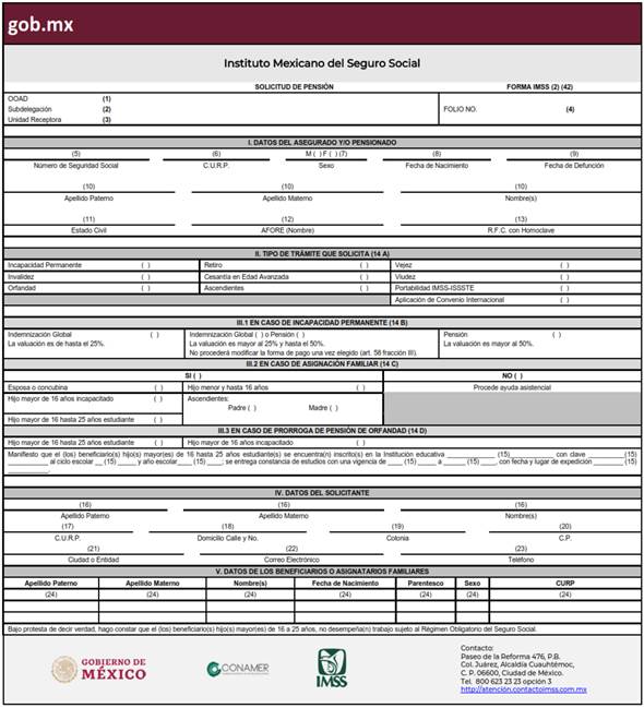 Para solicitudes de la Ley del Seguro Social vigente, en lo que hace a las pensiones derivadas del Seguro de Incapacidad Permanente Total, Invalidez, Retiro, Cesantía en Edad Avanzada y Vejez, al momento de presentar la solicitud de otorgamiento de la prestación en dinero deberá realizarse la declaración de la totalidad de personas beneficiarias por parte de la persona pensionada para que se efectúe la contratación del seguro de sobrevivencia respectivo, en caso contrario no se podrá realizar la contratación de éste de forma posterior.