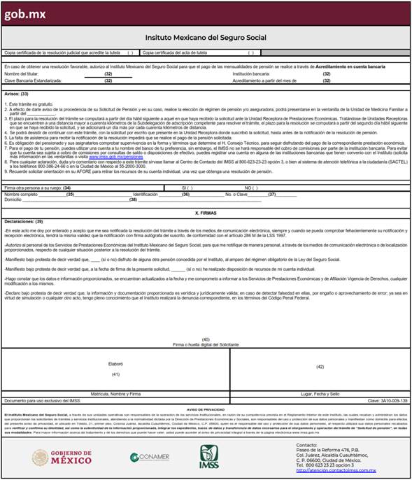 5. La persona interesada deberá manifestar al momento de realizar su trámite de solicitud de pensión, si disfruta o no, de alguna otra pensión concedida por el Instituto al amparo del régimen obligatorio de la Ley del Seguro Social o al amparo del Régimen de Jubilaciones y Pensiones. Asimismo, el interesado deberá señalar si se dispuso de los recursos de la cuenta individual, derivado de una resolución de Negativa de Pensión, en el Seguro de Retiro, Cesantía en Edad avanzada o Vejez.