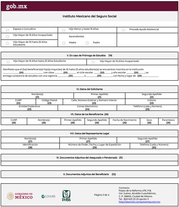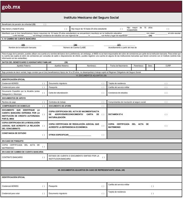 Tratándose de Incapacidad Permanente Total, Invalidez, Cesantía en Edad Avanzada, Vejez, Retiro; y la Solicitud de Pensión de Retiro, Cesantía en Edad Avanzada o Vejez a través de Transferencia de Derechos IMSS-ISSSTE; la persona solicitante indicará si tiene beneficiarios para el otorgamiento de la asignación familiar que corresponda, sin distingo de sexo y estado civil, en su defecto, será acreedor de una ayuda asistencial.