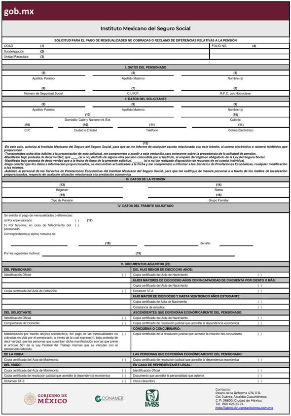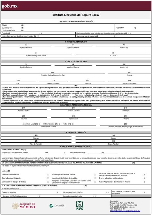 Adicionalmente, deberá presentar al Instituto, el documento señalado en el CAPÍTULO II “LISTA DE DOCUMENTOS A PRESENTAR EN LOS TRÁMITES”, FRACCIÓN II “EN ORIGINAL O COPIA CERTIFICADA QUE PERMANECERÁ EN EL EXPEDIENTE” numerales 20 o 21, según corresponda. Asimismo, la persona pensionada o su representante legal deberá realizar su solicitud en el Departamento de Pensiones Subdelegacional que controla la pensión, el cambio de domicilio a la Subdelegación Guerrero del OOAD Norte del Distrito Federal (CDMX), siendo el área concentradora, hasta en tanto se amplíe a otras Subdelegaciones su control.