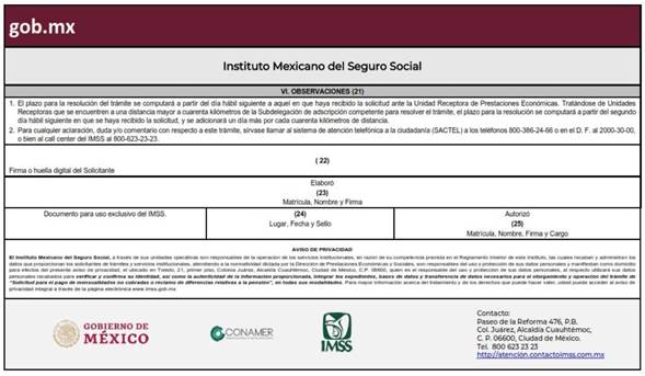 Matrícula, nombre completo y firma del empleado responsable de recepción de la solicitud y sello del servicio de prestaciones económicas. |
