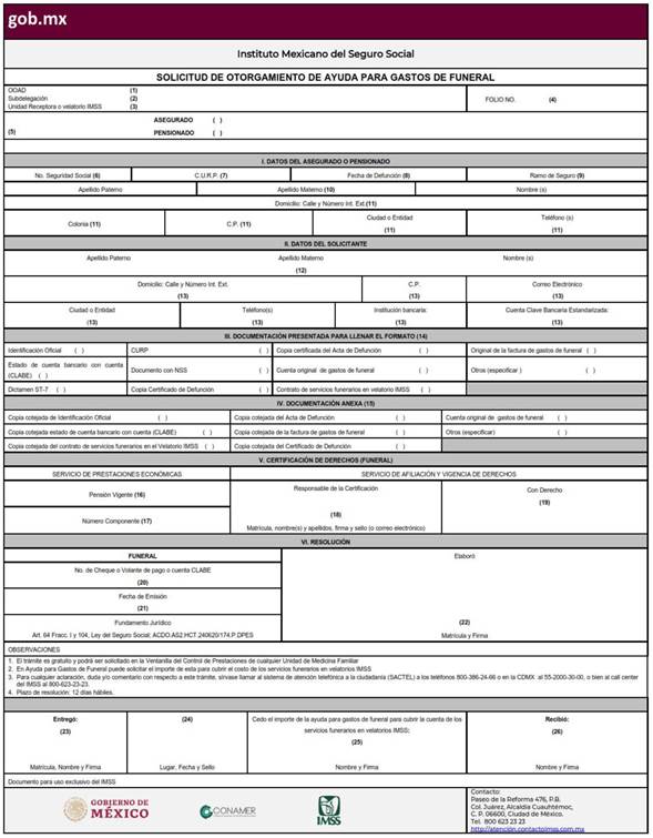 “Este Consejo Técnico, con fundamento en lo dispuesto por los artículos 251, fracciones IV, XIII y XXXVII, 263 y 264, fracciones III, XIV y XVII, de la Ley del Seguro Social; 5 y 57, de la Ley Federal de las Entidades Paraestatales; 31, fracciones IV y XX, del Reglamento Interior del Instituto Mexicano del Seguro Social; de conformidad con el planteamiento presentado por el Director General, por conducto de la persona Titular de la Dirección de Prestaciones Económicas y Sociales, mediante oficio número 374 de fecha 19 de junio de 2023, así como del dictamen del Comité del mismo nombre, del propio Órgano de Gobierno, emitido en reunión celebrada el día 16 del mismo mes y año, Acuerda: Primero.- Dejar sin efectos el Acuerdo número ACDO.AS2.HCT.281020/286.P.DPES y sus Anexos, publicado en el Diario Oficial de la Federación el 11 de diciembre de 2020, relativo a la aprobación de los datos y documentos específicos que se deben proporcionar o adjuntar para efectuar los trámites de prestaciones en dinero que prevé la Ley del Seguro Social ante el Instituto Mexicano del Seguro Social, referidos en los Anexos A y B. Segundo.- Aprobar los Anexos A y B del presente Acuerdo, que contienen las Reglas Generales, lineamientos, así como datos, documentos y formatos específicos que se deben proporcionar o adjuntar para llevar a cabo diversos trámites ante el Instituto Mexicano del Seguro Social, en materia de prestaciones en dinero que prevé la Ley del Seguro Social, tales como: A) Solicitud de Pensión de Incapacidad Permanente; B) Solicitud de Pensión de Invalidez; C) Solicitud de Pensión de Cesantía en Edad Avanzada o Vejez; D) Solicitud de Pensión de Retiro; E) Solicitud de Pensión de Retiro, Cesantía en Edad Avanzada o Vejez a través de transferencia de derechos IMSS-ISSSTE; F) Solicitud de Pensión de Viudez; G) Solicitud de Pensión de Orfandad, G.1) Modalidades: G.1.1) Hijo menor y hasta 16 años, G.1.2) Hijo mayor de 16 y hasta 25 años estudiante y G.1.3) Hijo mayor de 16 años incapacitado; H) Solicitud de Pensión de Ascendientes; I) Solicitud de modificación de pensión por finiquito por contraer nuevas nupcias; J) Solicitud de modificación de pensión por hechos que inciden en el cálculo del monto del pago de la misma y por cambio de cuenta bancaria; K) Solicitud para el pago de mensualidades no cobradas o reclamo de diferencias relativas a la pensión, K.1) Modalidades: K.1.1) Trámite realizado por el pensionado y K.1.2) Trámite realizado por terceros en caso de fallecimiento del pensionado; L) Solicitud para préstamo a cuenta de pensión del Régimen de la Ley del Seguro Social 1973; M) Solicitud de ayuda para gastos de matrimonio; N) Solicitud de ayuda para gastos de funeral; Ñ) Solicitud de registro de pago de subsidios, Ñ.1) Modalidades: Ñ.1.1) En cuenta bancaria, en Línea: Registro, Modificación y Baja, Ñ.1.2) En cuenta bancaria, en Ventanilla: Registro, Modificación y Baja, y Ñ.1.3) Celebración de convenio de pago indirecto y reembolso de subsidios, y O) Solicitud de Pago de licencia por cuidados médicos de hijos de hasta 16 años, aplicación del artículo 140 Bis de la Ley del Seguro Social, O.1) Modalidades: O.1.1) En cuenta bancaria, en Línea: Registro y Modificación y O.1.2) En cuenta bancaria, en Ventanilla: Registro y Modificación; así como los plazos máximos de resolución del trámite y la vigencia de los mismos. Tercero.- Instruir a la Dirección de Prestaciones Económicas y Sociales para que, de manera directa o por conducto de sus unidades administrativas competentes, dicte las circulares que considere convenientes para la debida aplicación, por parte de los Órganos de Operación Administrativa Desconcentrada, de las disposiciones contenidas en el presente Acuerdo y resuelvan las dudas o aclaraciones que con ese motivo se presenten. Cuarto.- Instruir a la persona titular de la Dirección Jurídica para que realice los trámites necesarios ante las instancias competentes, para la publicación de este Acuerdo y sus Anexos en el Diario Oficial de la Federación. Quinto.- El presente Acuerdo entrará en vigor el día hábil siguiente de su publicación en el Diario Oficial de la Federación. Sexto.- En tanto inicie la vigencia del presente Acuerdo, continuará vigente el diverso ACDO.AS2.HCT.281020/286.P.DPES y sus Anexos, aprobado por este Órgano de Gobierno en sesión ordinaria de 28 de octubre de 2020, publicado en el Diario Oficial de la Federación el 11 de diciembre del mismo año”.