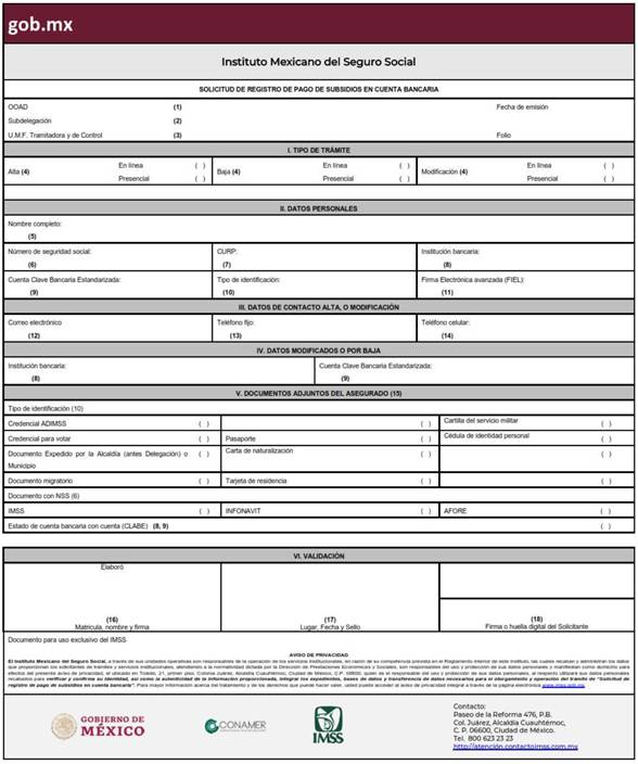 Para todos los pagos de prestaciones económicas mediante acreditamiento en cuenta bancaria, es importante que el interesado sea titular y proporcione la información de una cuenta bancaria Nivel 4 (clasificación establecida por las instituciones bancarias, que especifica que para la contratación de la cuenta se requiere acudir a una sucursal bancaria y proporcionar identificación, comprobante de domicilio, entre otros; así como completar y firmar el formulario correspondiente). Ya que, de no ser así, los montos de pago, pudieran no ser aceptados por el sistema de pagos interbancarios; y se deberá cambiar la cuenta bancaria, para estar en posibilidad de efectuar el depósito.