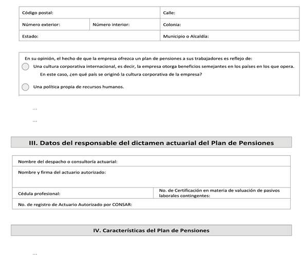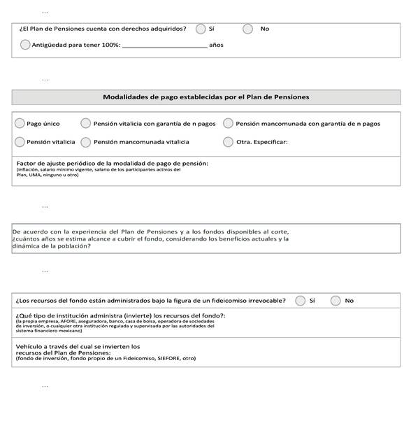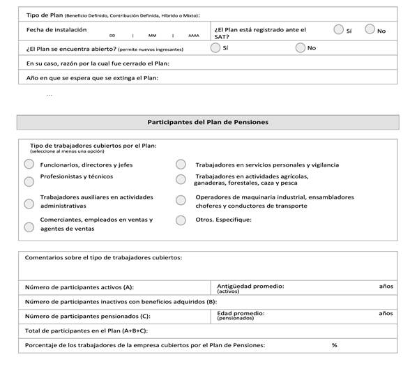Dicho formulario será puesto a disposición de los patrones o los actuarios que éstos designen, a través del SIREPP, e incluirá información relacionada con las características del plan de pensiones, sus participantes, aportaciones, beneficios, rendimientos, políticas de inversión y recursos financieros con la naturaleza de contribuir a los fines de la obtención de pago de pensiones por jubilaciones, retiro anticipado o previos a la jubilación establecidos en los propios planes.