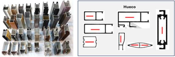 14. Los perfiles huecos de aluminio tienen uso principalmente arquitectónico y se emplean en la elaboración de ventanas y puertas que —en conjunto con otros perfiles— forman la parte móvil de una ventana o puerta corrediza para alojar un vidrio, muros cortina, puertas de entrada comerciales, cubiertas de pasarelas, cercas de jardín y placas de techo.