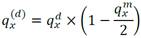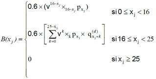 Es la probabilidad que mantengan el derecho como beneficiarios j huérfanos dobles de m originales en el año k. |